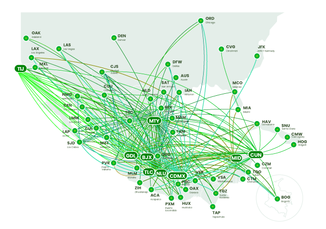 Tasa anual de crecimiento compuesto (TACC) en pasajeros e ingresos de 39.4% y 49.4%, respectivamente, en el periodo de 2006-2024.